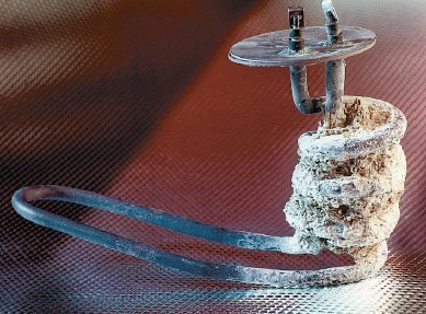 现象三:洗澡的花洒水流越来越小,打开一看,除了锈迹斑斑更多的是乳黄色粉末沉淀。